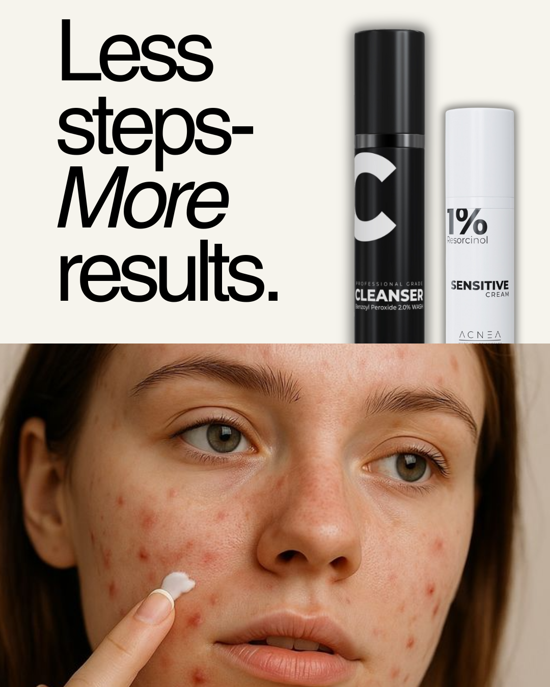Clear skin doesn’t need 12 products.Just a cleanser + spot cream that actually work.